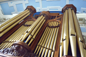 Every pipe, valve, and lead tube was examined, cleaned, and rebuilt; the delicate pneumatic action carefully repaired; and the façade pipes stripped of later paint to reveal their original gilded splendour. Where original pipework was missing, research into other Norman & Beard instruments ensured faithful replacements.